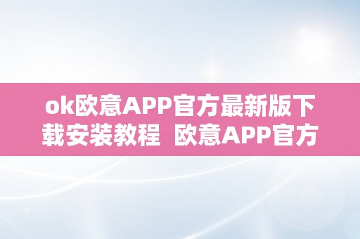 ok欧意APP官方最新版下载安装教程 欧意APP官方最新版下载安装教程及欧意ok官网