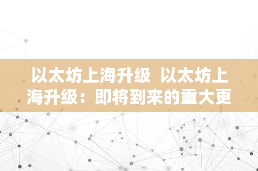 以太坊上海升级 以太坊上海升级:即将到来的重大更新
