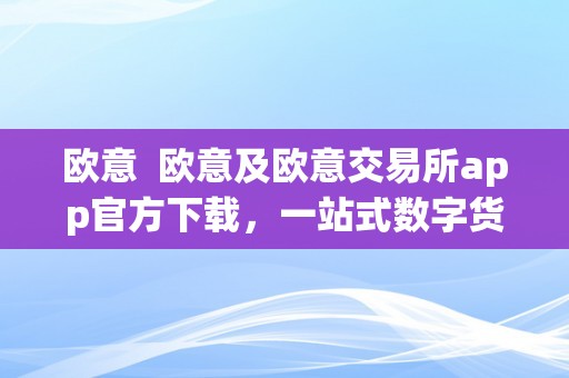 欧意 欧意及欧意交易所app官方下载,一站式数字货币交易平台,让您轻松畅享投资乐趣
