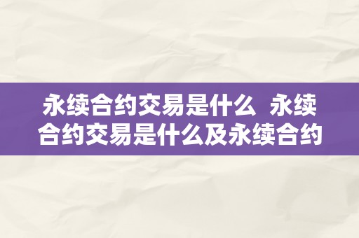 永续合约交易是什么 永续合约交易是什么及永续合约交易是什么意思