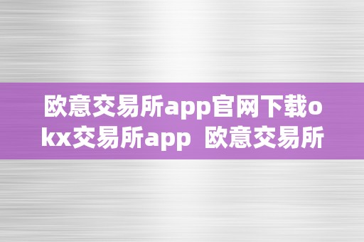 欧意交易所app官网下载okx交易所app 欧意交易所APP官网下载及OKX交易所APP介绍