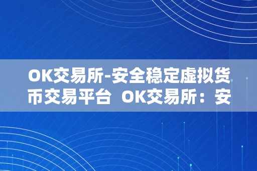 OK交易所-安全稳定虚拟货币交易平台 OK交易所:安全稳定的虚拟货币交易平台