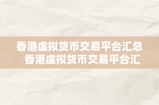 香港虚拟货币交易平台汇总 香港虚拟货币交易平台汇总:打造安全高效的数字资产交易生态