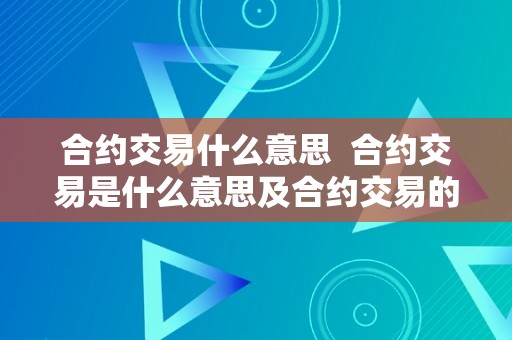合约交易什么意思 合约交易是什么意思及合约交易的定义与特点