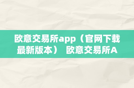 欧意交易所app(官网下载最新版本) 欧意交易所App官网下载最新版本:便捷、安全的交易体验
