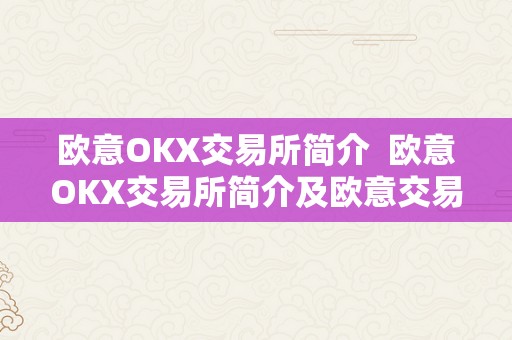 欧意OKX交易所简介 欧意OKX交易所简介及欧意交易平台