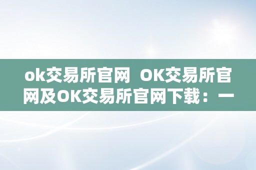 ok交易所官网 OK交易所官网及OK交易所官网下载:一站式数字资产交易平台