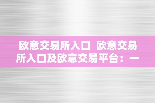欧意交易所入口 欧意交易所入口及欧意交易平台:一站式数字资产交易平台