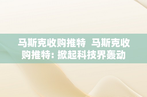 马斯克收购推特 马斯克收购推特: 掀起科技界轰动