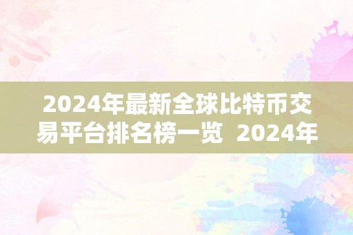 2024年最新全球比特币交易平台排名榜一览 2024年最新全球比特币交易平台排名榜一览