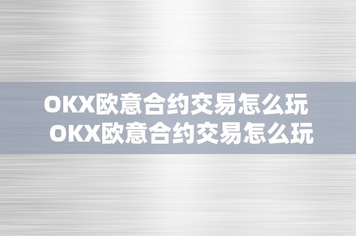 OKX欧意合约交易怎么玩 OKX欧意合约交易怎么玩及欧意okex怎么交易