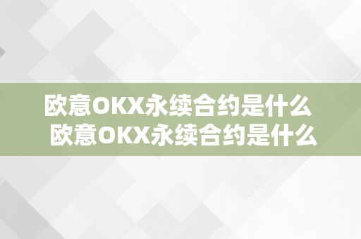 欧意OKX永续合约是什么 欧意OKX永续合约是什么及欧意合约怎么玩