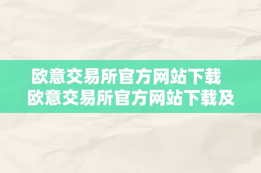 欧意交易所官方网站下载 欧意交易所官方网站下载及安装指南