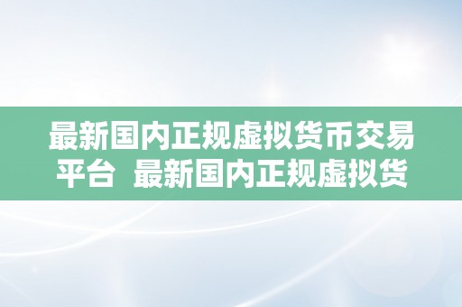 最新国内正规虚拟货币交易平台 最新国内正规虚拟货币交易平台:安全稳定、便捷高效的数字资产交易平台