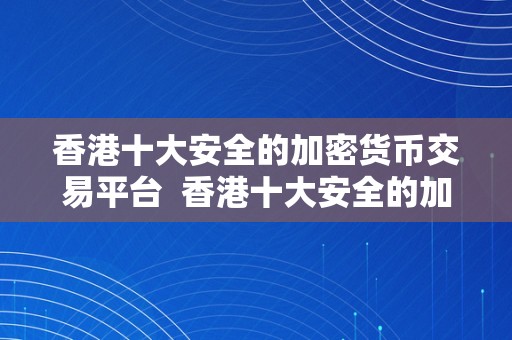 在当今数字货币市场蓬勃发展的背景下,加密货币交易平台成为越来越多投资者选择进行交易的平台。随着加密货币市场的不断扩大,也伴随着一些安全隐患和风险。选择一个安全可靠的加密货币交易平台显得尤为重要。在香港,有许多加密货币交易平台,但其中哪些是安全的呢?以下将介绍香港十大安全的加密货币交易平台。