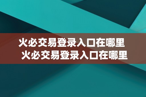 火必交易登录入口在哪里 火必交易登录入口在哪里及火帀网交易平台app