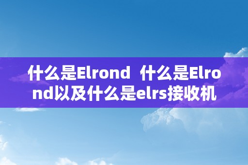 什么是Elrond 什么是Elrond以及什么是elrs接收机