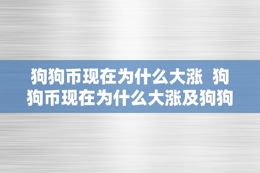 狗狗币现在为什么大涨 狗狗币现在为什么大涨及狗狗币现在为什么大涨这么快