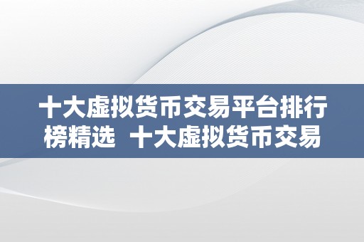 十大虚拟货币交易平台排行榜精选 十大虚拟货币交易平台排行榜精选