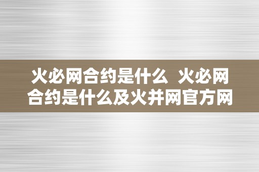 火必网合约是什么 火必网合约是什么及火并网官方网站