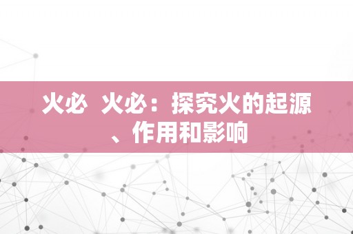 火必是人类生活中不可或缺的一部分,它的起源、作用和影响深远而复杂。我们应当正确使用火,充分发挥其积极作用,同时注意防范火灾,减少对环境的破坏。只有这样,我们才能更好地利用火这一神奇的能源,促进人类文明的持续发展。