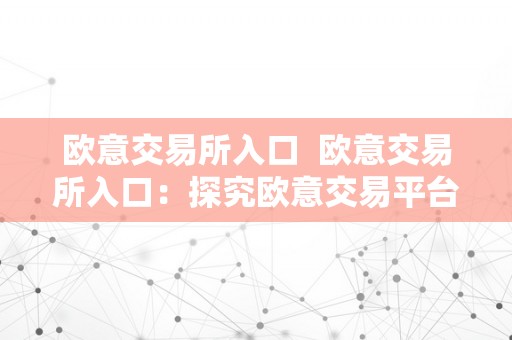 欧意交易所入口 欧意交易所入口:探究欧意交易平台的优势和特点