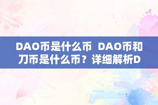DAO币是什么币 DAO币和刀币是什么币?详细解析DAO币和刀币的特点和用途