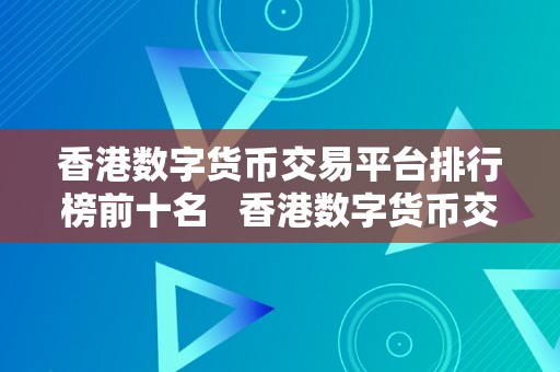 香港数字货币交易平台排行榜前十名 香港数字货币交易平台排行榜前十名: 选择最适合您的平台