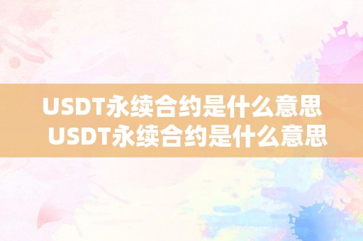 USDT永续合约是什么意思 USDT永续合约是什么意思