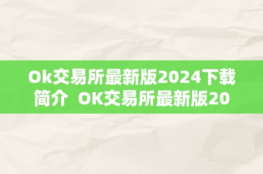 Ok交易所最新版2024下载简介 OK交易所最新版2024下载简介