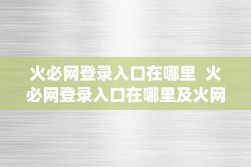 火必网登录入口在哪里 火必网登录入口在哪里及火网官网app新版下载