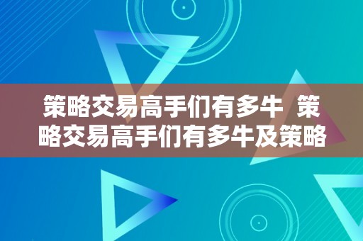 策略交易高手们有多牛 策略交易高手们有多牛及策略