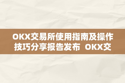 OKX交易所使用指南及操作技巧分享报告发布 OKX交易所使用指南及操作技巧分享报告发布