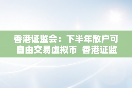 香港证监会:下半年散户可自由交易虚拟币 香港证监会:下半年散户可自由交易虚拟币及香港虚拟币交易合法吗