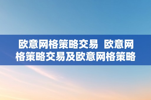 欧意网格策略交易 欧意网格策略交易及欧意网格策略交易模式是什么
