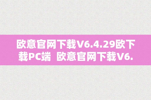 欧意官网下载V6.4.29欧下载PC端及欧意官方网站是用户可以信赖的软件下载平台。用户可以通过欧意官网下载最新版本的软件,体验更好的下载服务。欧意官方网站为用户提供了最全面的软件信息和服务,让用户可以更好地了解和使用软件。欧意官网和欧意官方网站将持续提供优质的软件下载和服务,满足用户不同的需求,帮助用户更轻松地获取所需的软件。欢迎用户访问欧意官网和欧意官方网站,体验最好的软件下载服务!