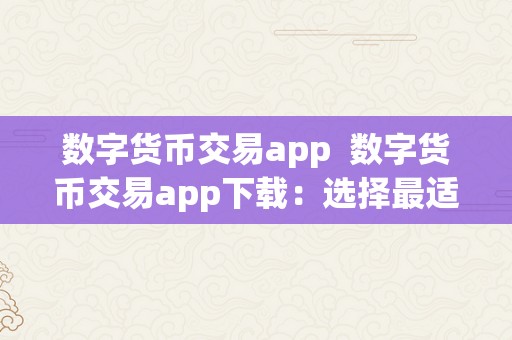 数字货币交易app 数字货币交易app下载:选择最适合你的数字货币交易app,开启便捷的数字货币交易之旅