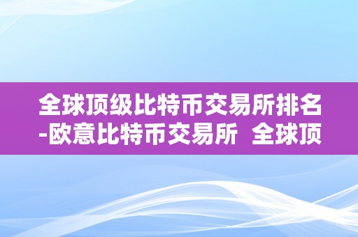 全球顶级比特币交易所排名-欧意比特币交易所 全球顶级比特币交易所排名-欧意比特币交易所及比特币欧洲交易所