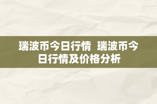 瑞波币今日行情 瑞波币今日行情及价格分析
