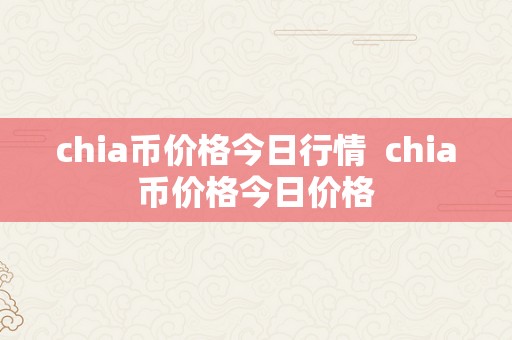 chia币价格今日行情 chia币价格今日价格