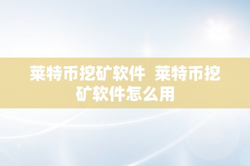 莱特币挖矿软件及莱特币挖矿软件怎么用
