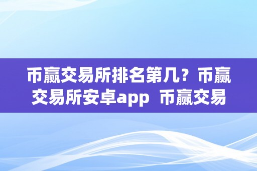 币赢交易所排名第几?币赢交易所安卓app及币赢交易所排行第几