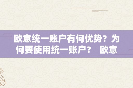 欧意统一账户有何优势?为何要使用统一账户? 欧意平台