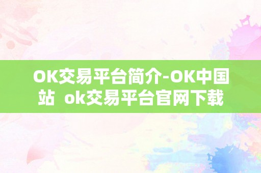 OK交易平台简介-OK中国站及ok交易平台官网下载