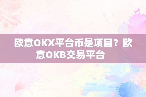 欧意OKX平台币是项目?欧意OKB交易平台