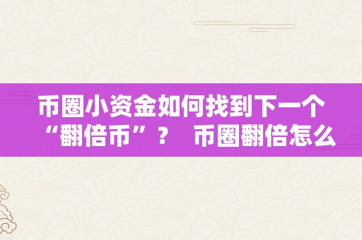 币圈小资金如何找到下一个“翻倍币”? 币圈翻倍怎么算