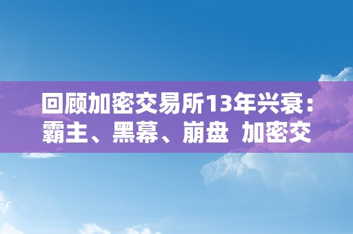回顾加密交易所13年兴衰:霸主、黑幕、崩盘 加密交易所上市