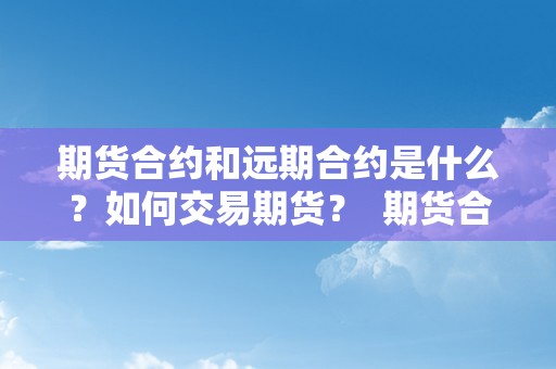期货合约和远期合约是什么?如何交易期货? 期货合约和远期合约的区别是什么