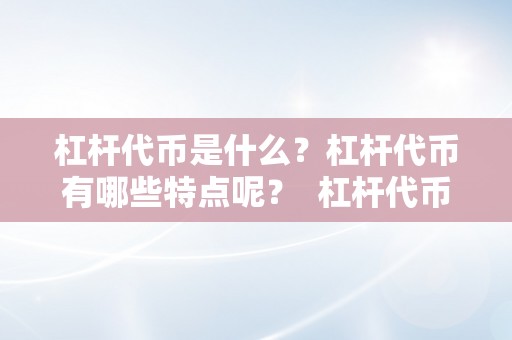 杠杆代币是什么?杠杆代币有哪些特点呢? 杠杆代币是什么意思