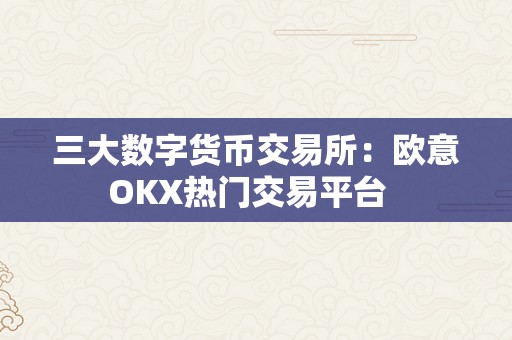 三大数字货币交易所是指全球范围内最具规模和影响力的数字货币交易平台,包括欧易OKX在内的三家交易所。这三大数字货币交易所在数字货币市场中扮演着重要的角色,影响着全球数字货币价格和市场走势。这三大数字货币交易所拥有庞大的用户群体和交易量,是数字货币投资者首选的交易平台之一。